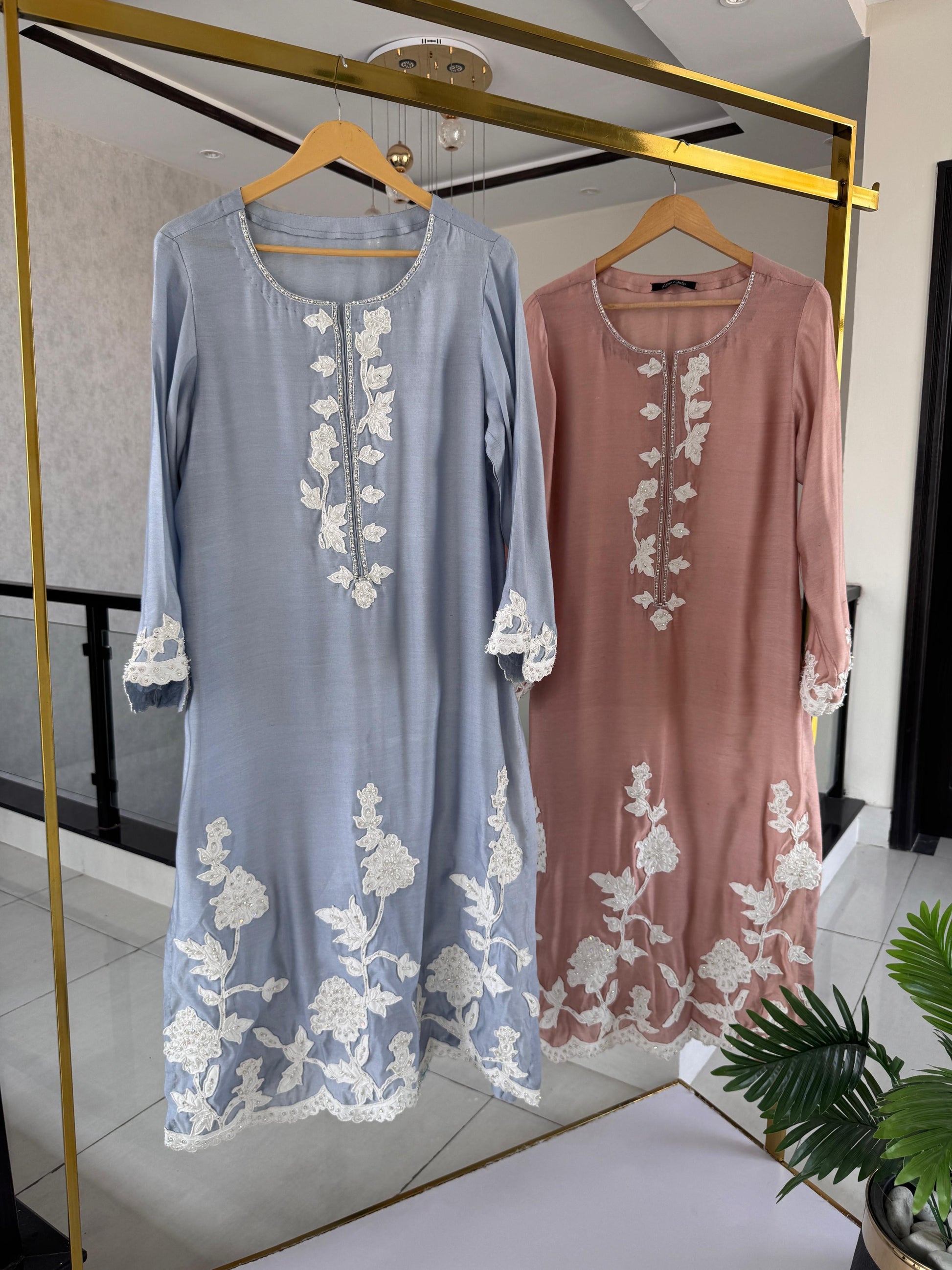 Petal Grace is the essence of understated elegance, crafted in breathable pure cotton net and delicately adorned with ivory threadwork that blooms across the neckline, cuffs, and hem. Paired with a fluid pure organza dupatta, this ensemble offers a soft, graceful silhouette—perfect for daytime gatherings, brunches, or festive moments with a touch of sophistication.